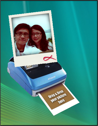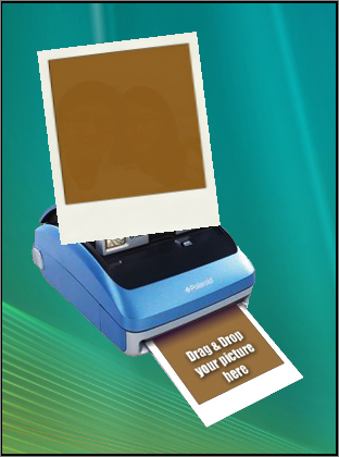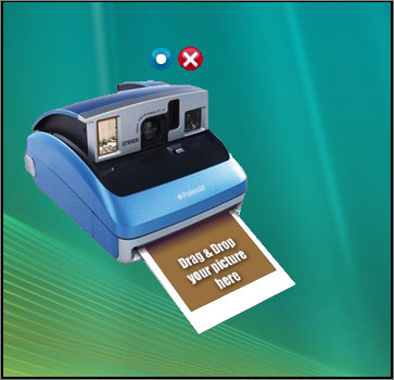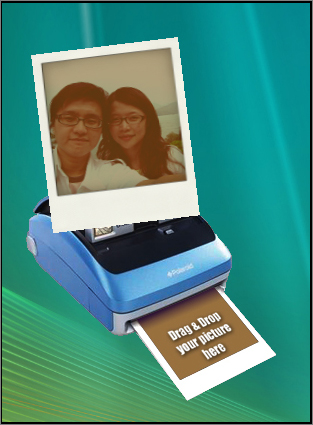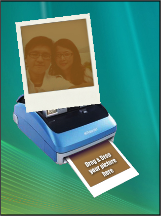 將所要改的圖拖曳到機器上,就會發出拍立得拍照的「喀嗞」捲片聲…然後照片就會出現。