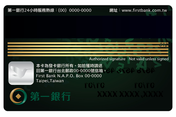 在設計上以第一銀行的企業理念「傳承與改造,並延續百年來始終如一的堅持,以現代化的 表現達到新生命與新動力。」與「金色代表財富、尊貴、領袖,墨綠色代表大地、生生不息 、永續傳承」等為設計根本並作延伸設計。